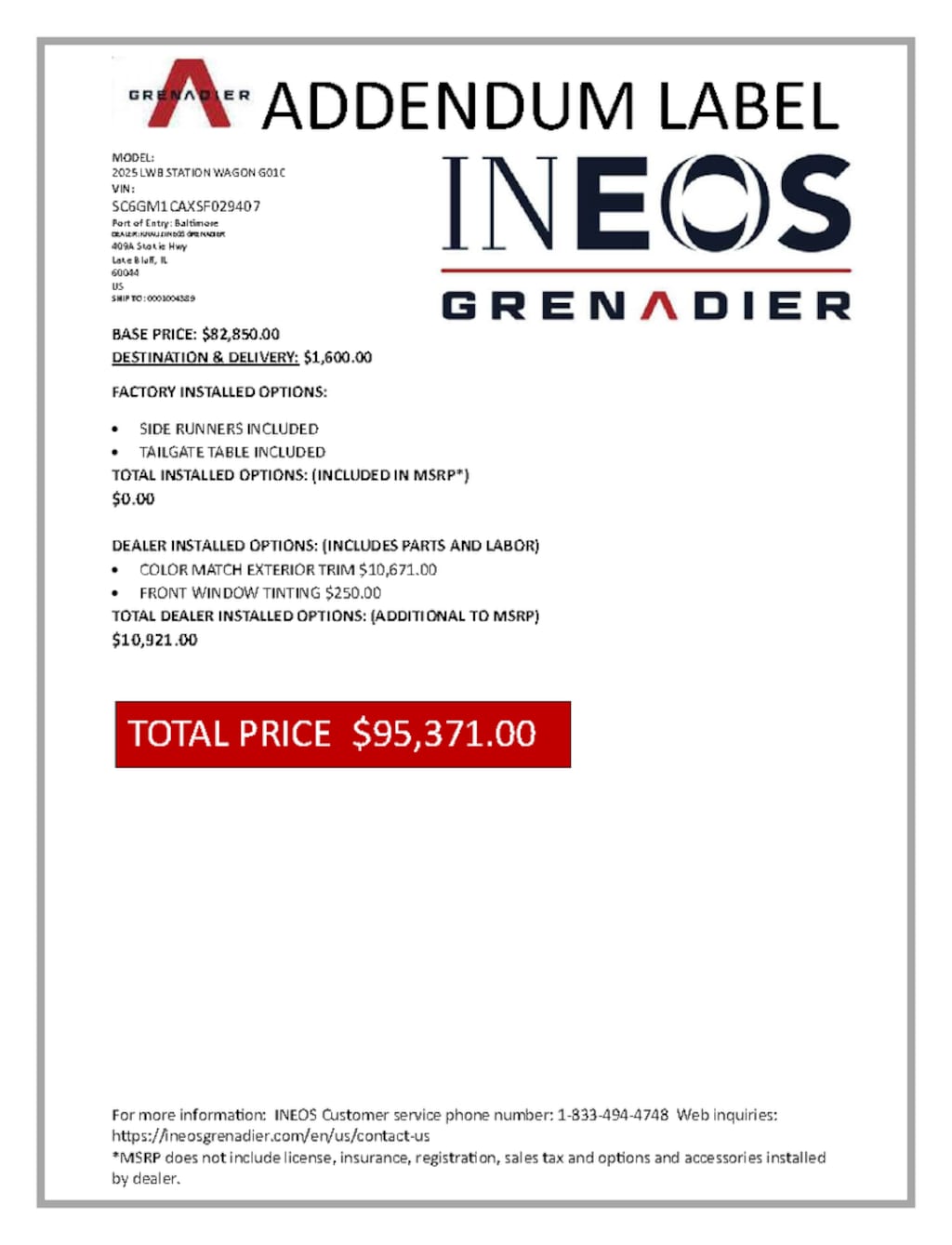 TOTAL DEALER INSTALLED OPTIONS: (ADDITIONAL TO MSRP)